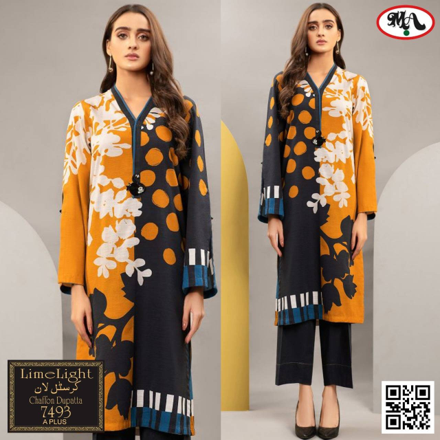 3 Pcs Lawn Suit Neck Embroidery With Shaffon Duppata